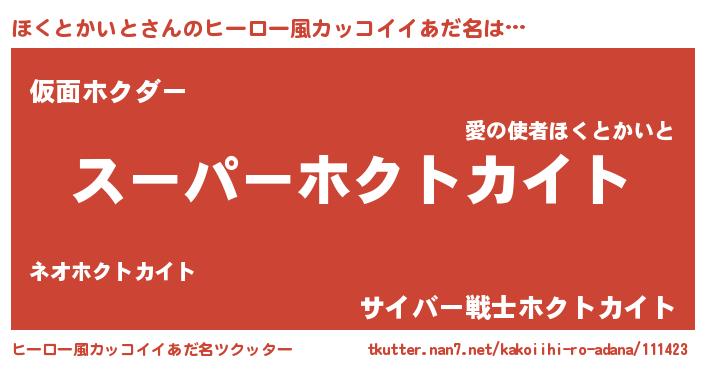 | ヘコむあだ名 | 『ほくもー』『ほくとかいと(笑)』 |