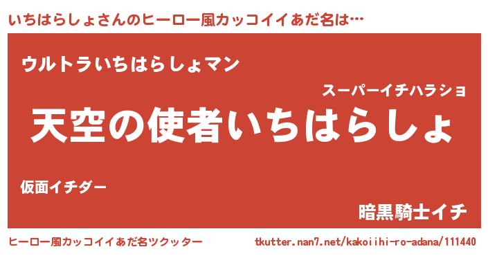 | 男性向けラノベタイトル風あだ名 | 『ノーゲーム・ノーイチハラショ』 |