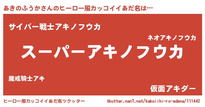 | 女子向けラノベタイトル風あだ名 | 『あきのふうか姫と円卓の騎士』 |