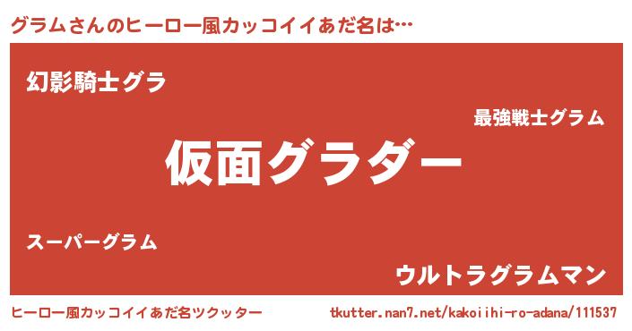| 男性向けラノベタイトル風あだ名 | 『この素晴らしい世界にグラムを!』 |