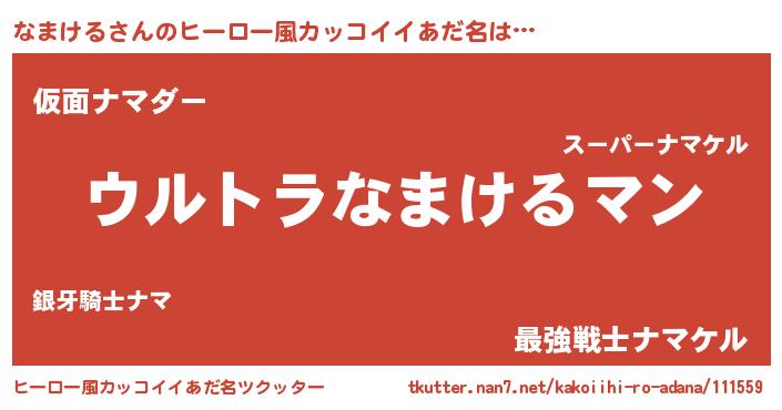 | 男性向けラノベタイトル風あだ名 | 『なまける~年齢イコール彼女いない歴の魔法使い~』 |