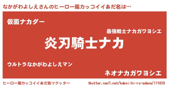 | 男性向けラノベタイトル風あだ名 | 『なかがわよしえの嫁は女の子じゃないと思った?』 |