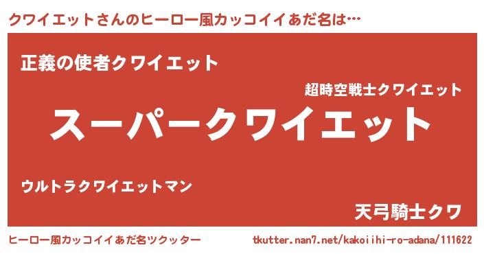 | 恥ずかしいあだ名 | 『プリティークワイエット』『クワっちょ』 |