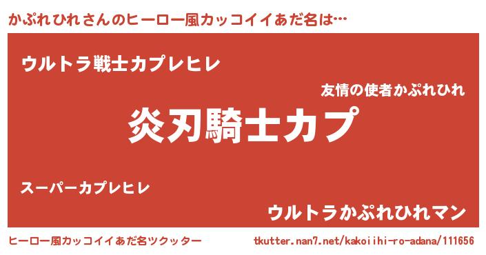 | 男性向けラノベタイトル風あだ名 | 『かぷれひれの嫁は女の子じゃないと思った?』 |