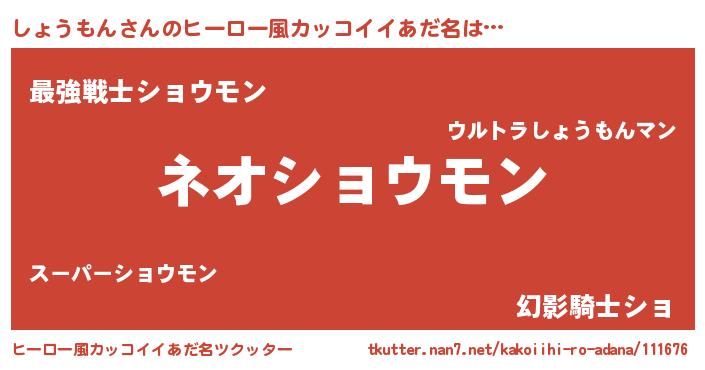 | 男性向けラノベタイトル風あだ名 | 『しょうもんという概念が存在しない退屈な世界 』 |