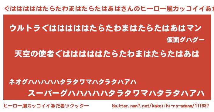 | 男性向けラノベタイトル風あだ名 | 『ノーゲーム・ノーグハハハハハタラタワマハタラタハアハ』 |