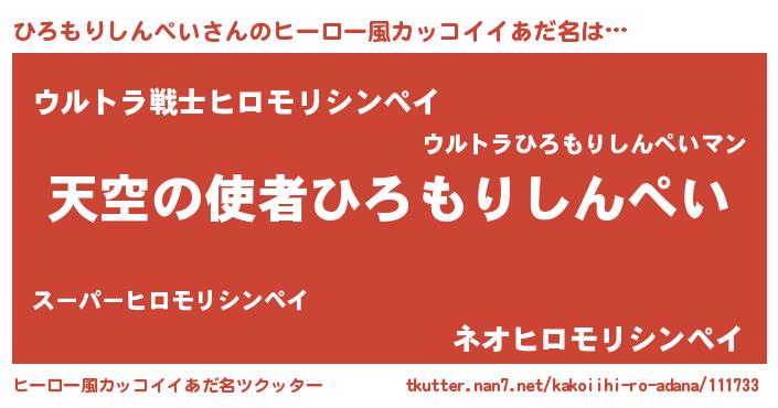 ひろもりしんぺいさんのヒーロー風カッコイイあだ名をツクッター!