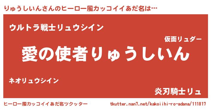 | ヘコむあだ名 | 『りゅぷりん』『りゅうしいん(笑)』 |
