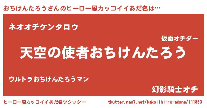 | 女子向けラノベタイトル風あだ名 | 『おちけんたろうの玉の輿計画!』 |