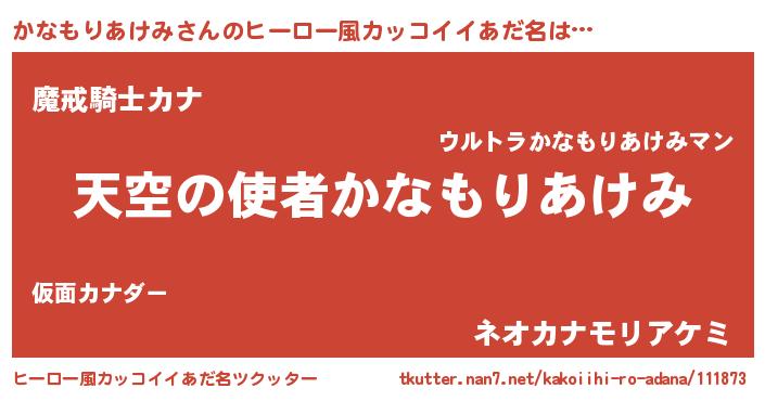 | 男性向けラノベタイトル風あだ名 | 『ノーゲーム・ノーカナモリアケミ』 |