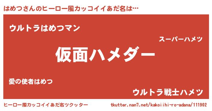| 胡散臭い通販商品みたいなあだ名 | 『あなたにだけ特別に提供する世界で10本だけ現存している希少なブランデー…その名も「はめつ」』 |