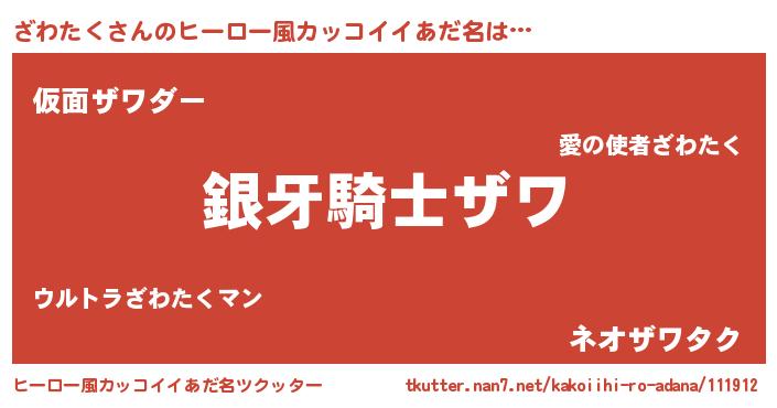 | ポケモン風あだ名 | 『ヒザワタク』『ザワゴンZ』 |