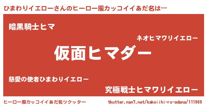 | 男性向けラノベタイトル風あだ名 | 『ひまわりイエローに滅ぼされるだけの簡単なお仕事です』 |
