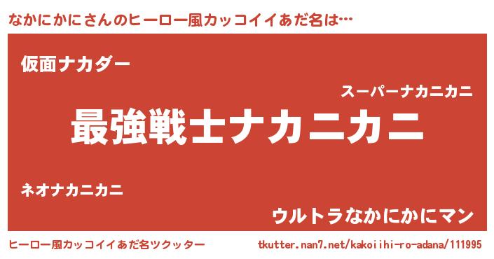 | 男性向けラノベタイトル風あだ名 | 『なかにかにに滅ぼされるだけの簡単なお仕事です』 |