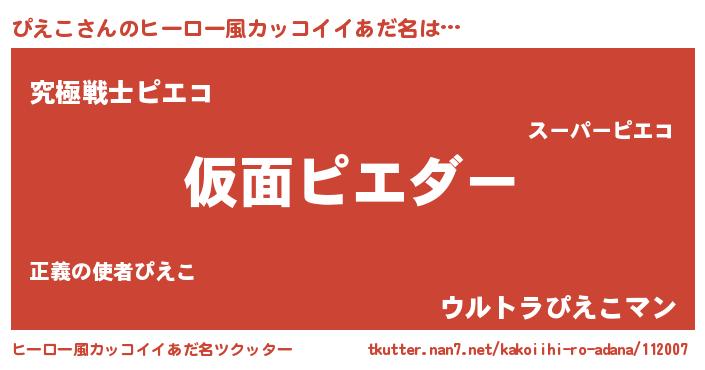 | 男性向けラノベタイトル風あだ名 | 『緋弾のピエコ』『魔法科高校のぴえこ』 |