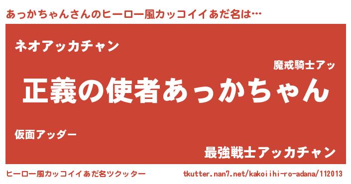 あっかちゃんさんのヒーロー風カッコイイあだ名をツクッター!