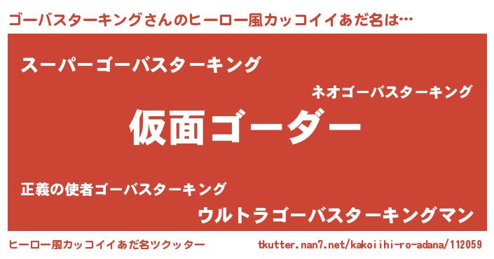 | 男性向けラノベタイトル風あだ名 | 『この素晴らしい世界にゴーバスターキングを!』 |