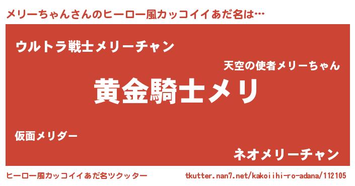 | 女子向けラノベタイトル風あだ名 | 『メリーちゃんは平凡を望む』 |