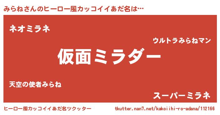 | 男性向けラノベタイトル風あだ名 | 『この素晴らしい世界にみらねを!』 |