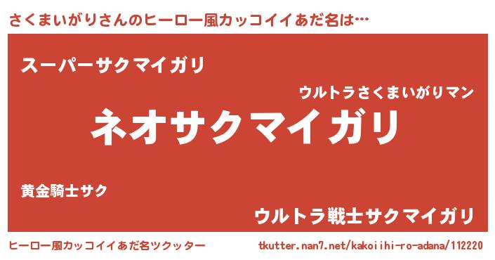 | ヘコむあだ名 | 『さくまいがり(震え声)』『さくっふぃ~』 |