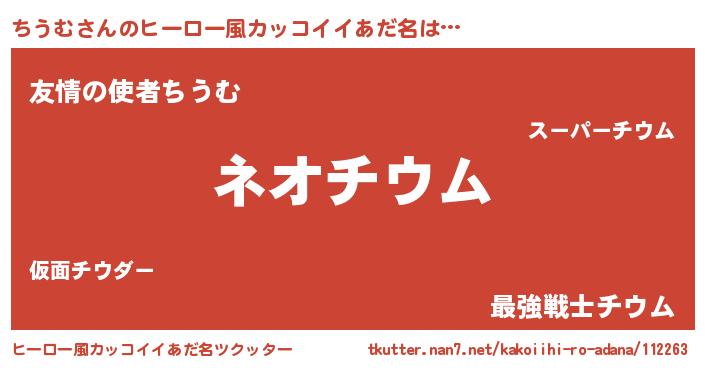 ちうむさんのヒーロー風カッコイイあだ名をツクッター!