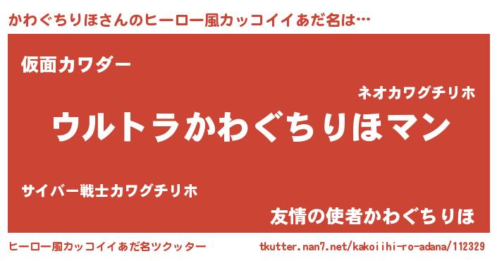 | 男性向けラノベタイトル風あだ名 | 『転生したらかわぐちりほだった件』 |