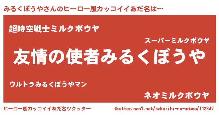 | 男性向けラノベタイトル風あだ名 | 『はたらくみるくぼうやさま!』 |