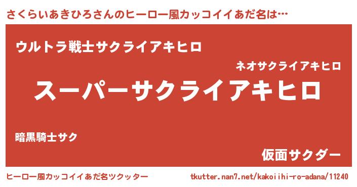 | 男性向けラノベタイトル風あだ名 | 『うちのさくらいあきひろが世界を掌握している!』 |