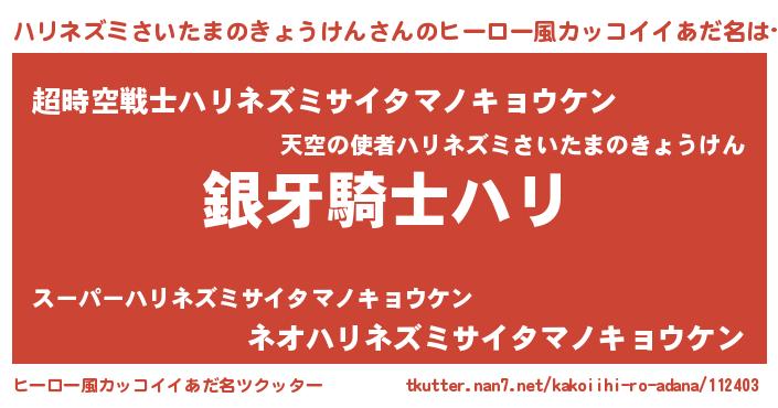 | 意味不明あだ名 | 『とにかく怪しいハリネズミさいたまのきょうけん』 |