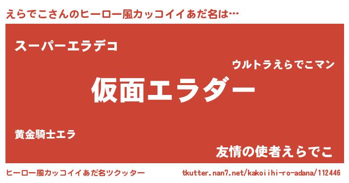 | 意味不明あだ名 | 『住所不定無職えらでこ(8歳)』 |