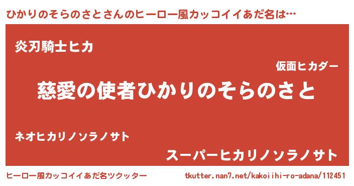 | 男性向けラノベタイトル風あだ名 | 『ノーゲーム・ノーヒカリノソラノサト』 |