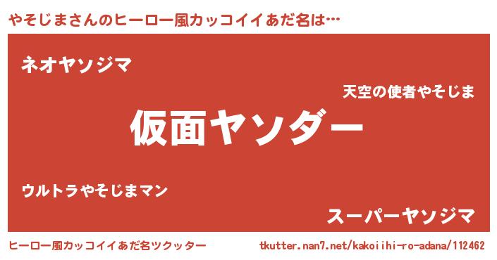 | 男性向けラノベタイトル風あだ名 | 『この素晴らしい世界にやそじまを!』 |
