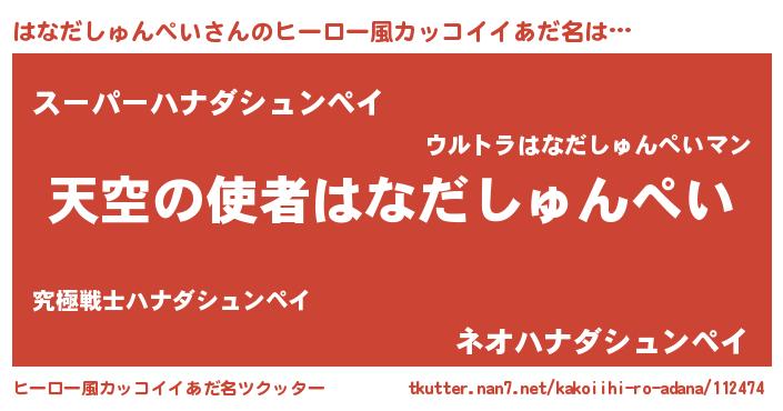 男性向けラノベタイトル風あだ名 | 『ノーゲーム・ノーハナダシュンペイ』 |