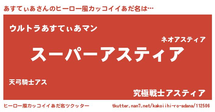 | 意味不明あだ名 | 『ペロリンあすてぃあ』『自称あすてぃあ』 |