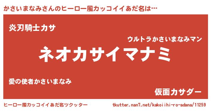 | ヘコむあだ名 | 『かさいまなみ(震え声)』『かさっちょ』 |