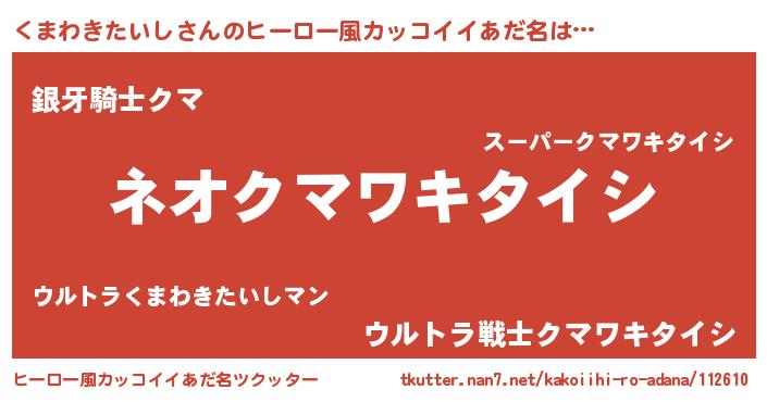 | 意味不明あだ名 | 『永久保存くまわきたいし』 |