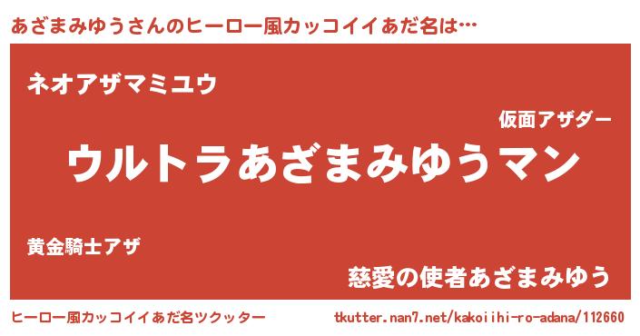 | 男性向けラノベタイトル風あだ名 | 『やはりあざまみゆうの青春ラブコメはまちがっている 』 |