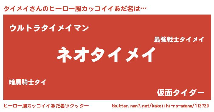 | 意味不明あだ名 | 『永久保存タイメイ』『自称タイメイ』 |