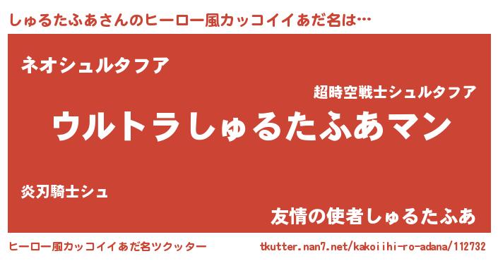 | 女子向けラノベタイトル風あだ名 | 『しゅるたふあの婚約者』 |