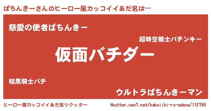 | 男性向けラノベタイトル風あだ名 | 『この素晴らしい世界にばちんきーを!』 |