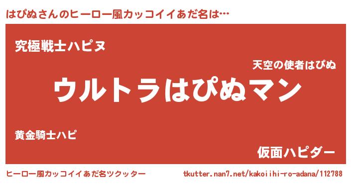 | 男性向けラノベタイトル風あだ名 | 『はたらくはぴぬさま!』『緋弾のハピヌ』 |