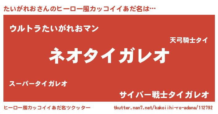 | 意味不明あだ名 | 『永久保存たいがれお』『自称たいがれお』 |