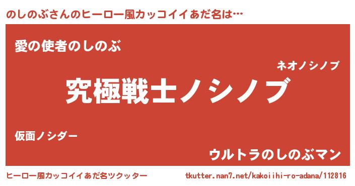 | 男性向けラノベタイトル風あだ名 | 『うちののしのぶが世界を掌握している!』 |