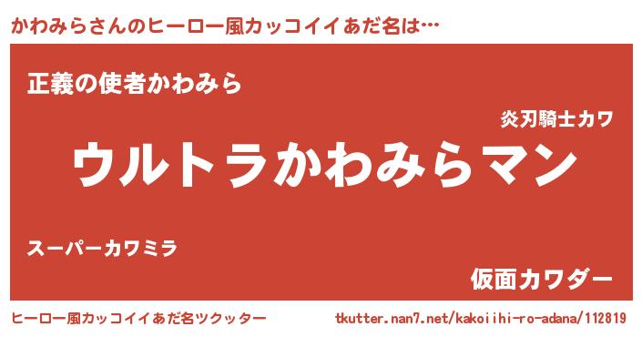 | 男性向けラノベタイトル風あだ名 | 『やはりかわみらの青春ラブコメはまちがっている 』 |