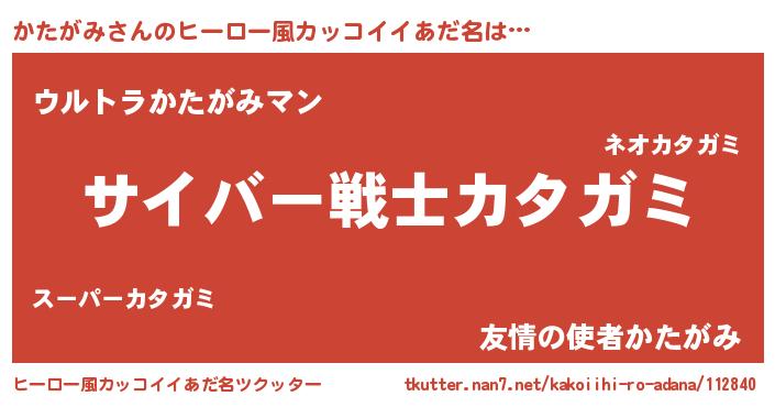 | 男性向けラノベタイトル風あだ名 | 『転生したらかたがみだった件』 |
