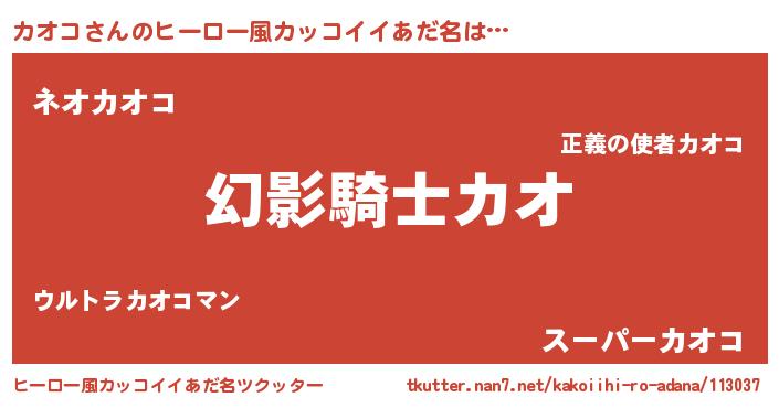 | 男性向けラノベタイトル風あだ名 | 『カオコの嫁は女の子じゃないと思った?』 |