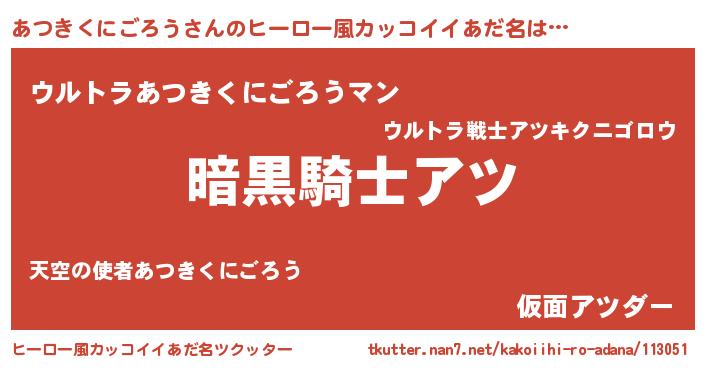 | 男性向けラノベタイトル風あだ名 | 『ダンジョンにあつきくにごろうを求めるのは間違っているだろうか』 |