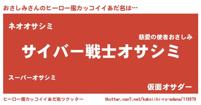| 男性向けラノベタイトル風あだ名 | 『転生したらおさしみだった件』 |