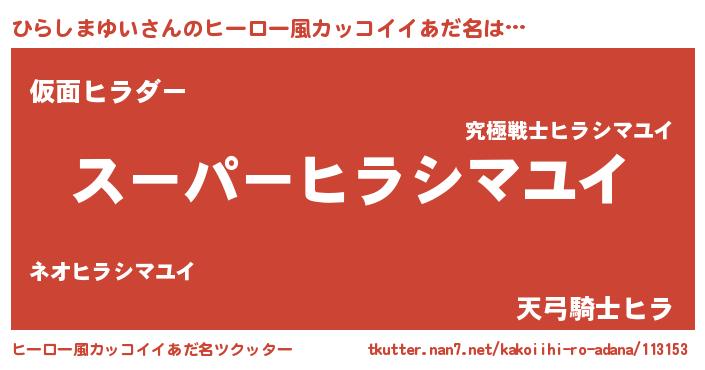 | 胡散臭い通販商品みたいなあだ名 | 『億万長者になれる霊験あらたかなお札…その名も「ひらしまゆい」』 |