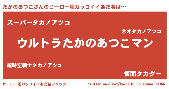 | ファンタジー風あだ名 | 『エターナルタカノアツコー』 |